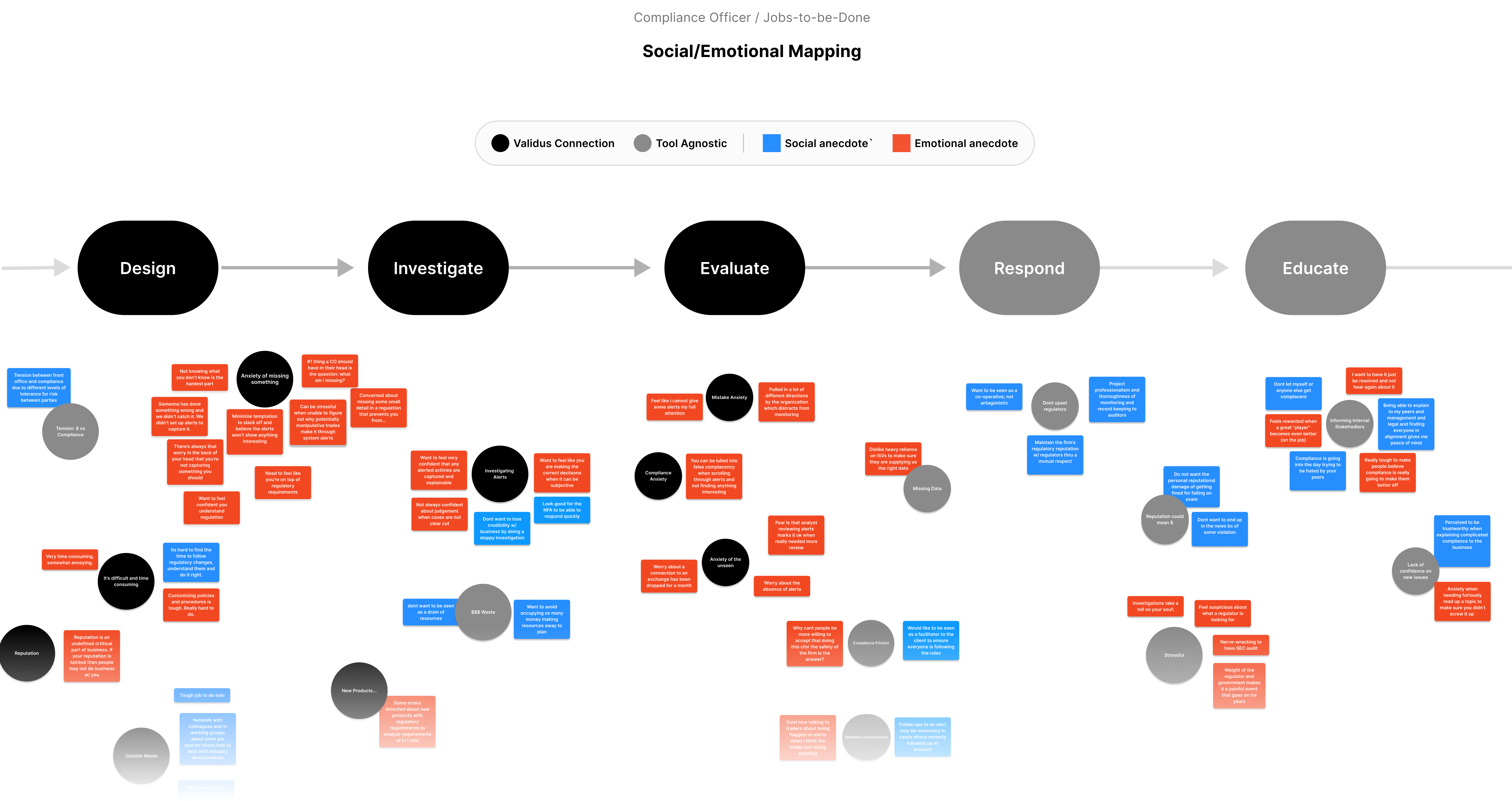 Validus is directly involved in the first 3 steps in the Compliance Officer's job. So, I looked at how they felt during these stages and found that the core issues they felt are: